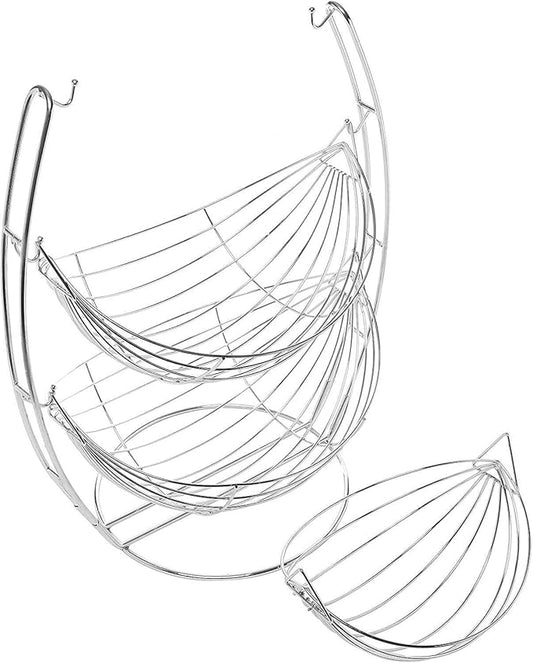 2 Tier Fruit Bowl Basket Vegetable Storage Rack Chrome Hammock Kitchen Stand